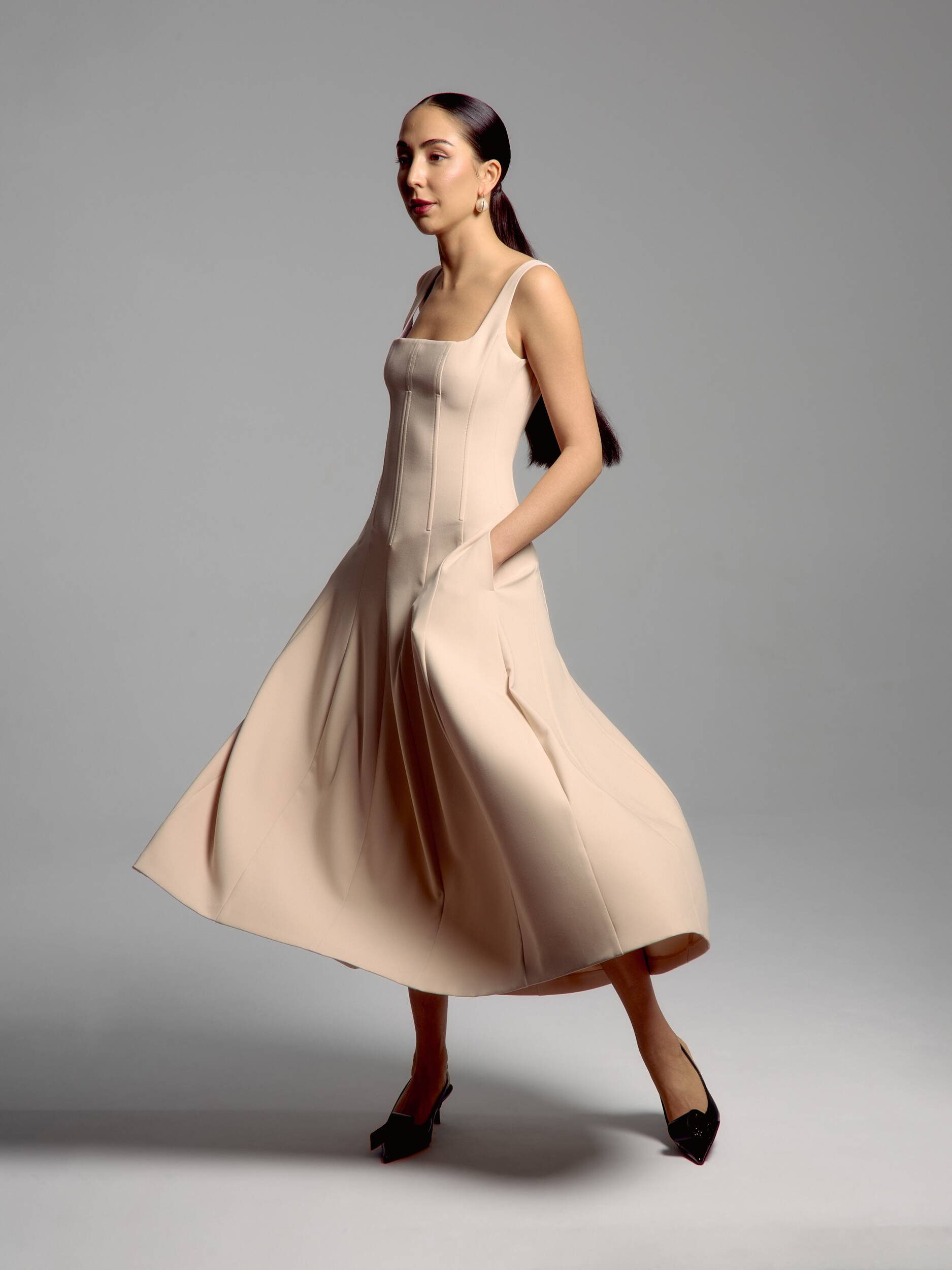 Новое платье от I AM Studio с корсетным лифом и пышной юбкой создает идеальный силуэт.